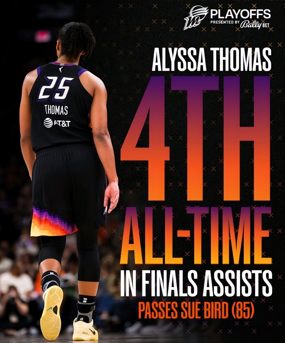 托马斯总决赛助攻超越苏伯德,升至WNBA总决赛历史第四。